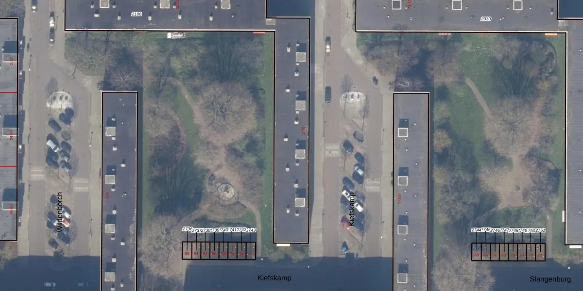 Het perceel waarop Kiefskamp 40 staat heeft een oppervlakte van 1772 m². Dit is een zeer groot perceel. De perceeloppervlakte wordt geregistreerd door het Kadaster. Gedetailleerde informatie over de maten van dit perceel kunt u vinden in het rapport Kadastrale kaart met maatvoering van Kiefskamp 40.