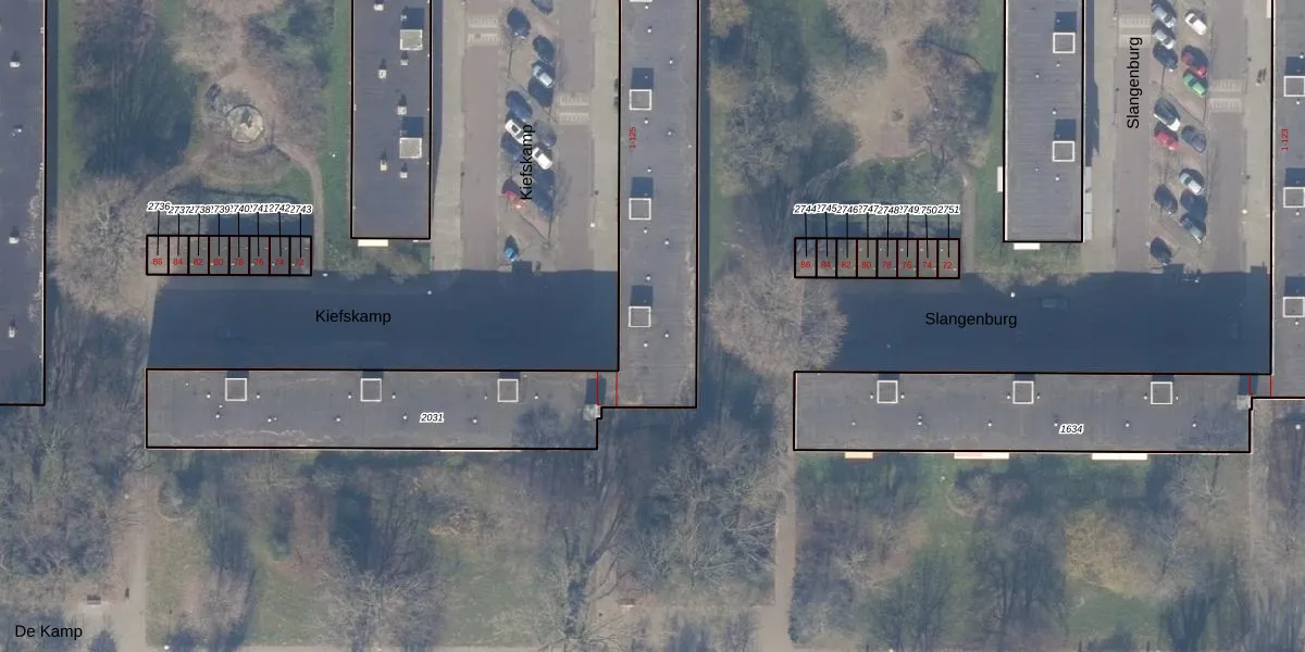 Het perceel waarop Kiefskamp 57 staat heeft een oppervlakte van 1777 m². Dit is een zeer groot perceel. De perceeloppervlakte wordt geregistreerd door het Kadaster. Gedetailleerde informatie over de maten van dit perceel kunt u vinden in het rapport Kadastrale kaart met maatvoering van Kiefskamp 57.