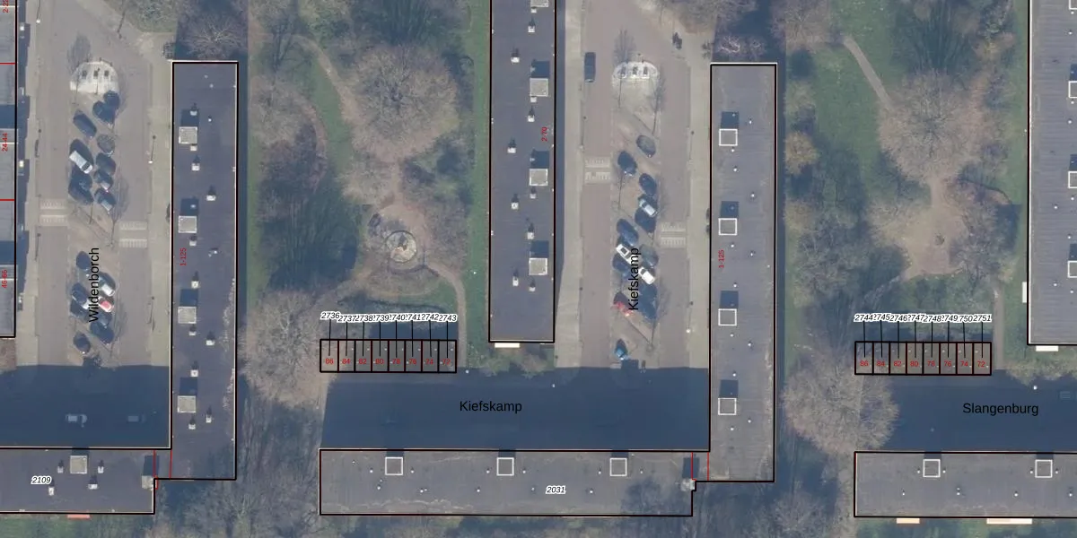 Het perceel waarop Kiefskamp 60 staat heeft een oppervlakte van 1772 m². Dit is een zeer groot perceel. De perceeloppervlakte wordt geregistreerd door het Kadaster. Gedetailleerde informatie over de maten van dit perceel kunt u vinden in het rapport Kadastrale kaart met maatvoering van Kiefskamp 60.