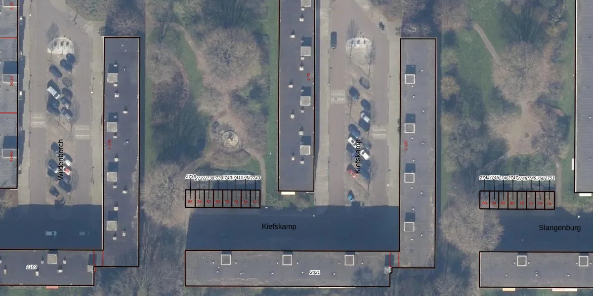 Het perceel waarop Kiefskamp 64 staat heeft een oppervlakte van 1772 m². Dit is een zeer groot perceel. De perceeloppervlakte wordt geregistreerd door het Kadaster. Gedetailleerde informatie over de maten van dit perceel kunt u vinden in het rapport Kadastrale kaart met maatvoering van Kiefskamp 64.