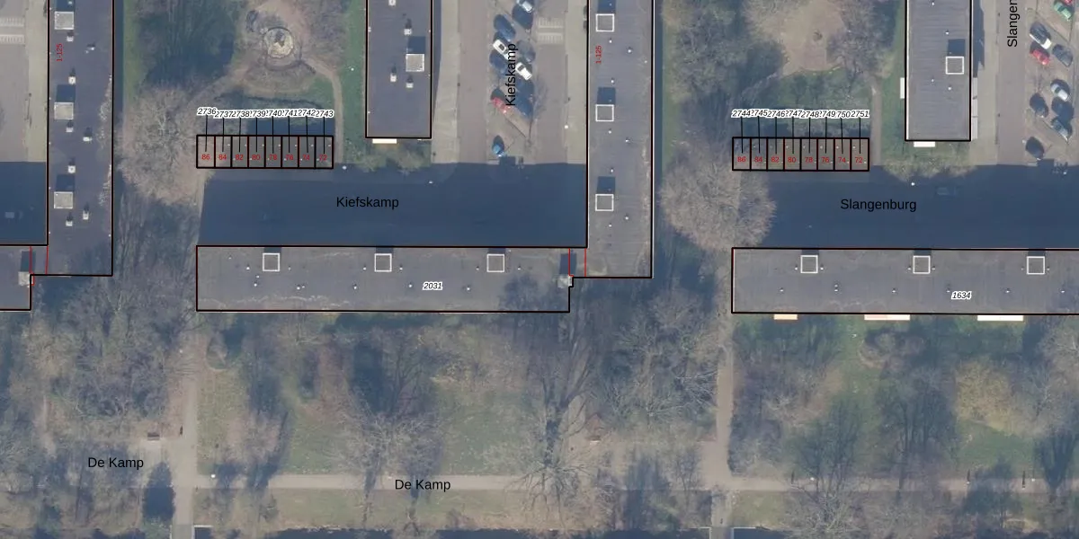 Het perceel waarop Kiefskamp 71 staat heeft een oppervlakte van 1777 m². Dit is een zeer groot perceel. De perceeloppervlakte wordt geregistreerd door het Kadaster. Gedetailleerde informatie over de maten van dit perceel kunt u vinden in het rapport Kadastrale kaart met maatvoering van Kiefskamp 71.