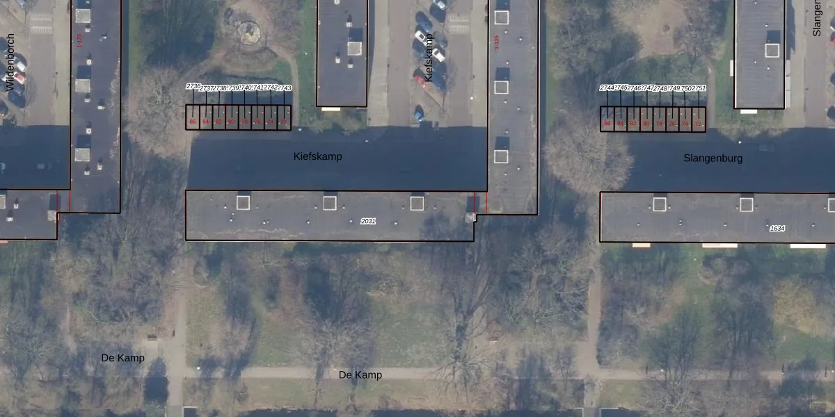 Het perceel waarop Kiefskamp 75 staat heeft een oppervlakte van 1777 m². Dit is een zeer groot perceel. De perceeloppervlakte wordt geregistreerd door het Kadaster. Gedetailleerde informatie over de maten van dit perceel kunt u vinden in het rapport Kadastrale kaart met maatvoering van Kiefskamp 75.