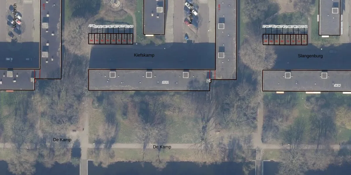 Het perceel waarop Kiefskamp 85 staat heeft een oppervlakte van 1777 m². Dit is een zeer groot perceel. De perceeloppervlakte wordt geregistreerd door het Kadaster. Gedetailleerde informatie over de maten van dit perceel kunt u vinden in het rapport Kadastrale kaart met maatvoering van Kiefskamp 85.