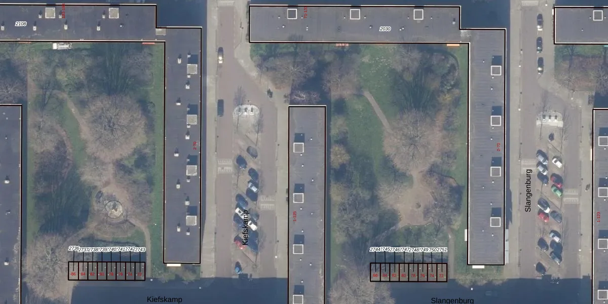 Het perceel waarop Kiefskamp 9 staat heeft een oppervlakte van 1777 m². Dit is een zeer groot perceel. De perceeloppervlakte wordt geregistreerd door het Kadaster. Gedetailleerde informatie over de maten van dit perceel kunt u vinden in het rapport Kadastrale kaart met maatvoering van Kiefskamp 9.
