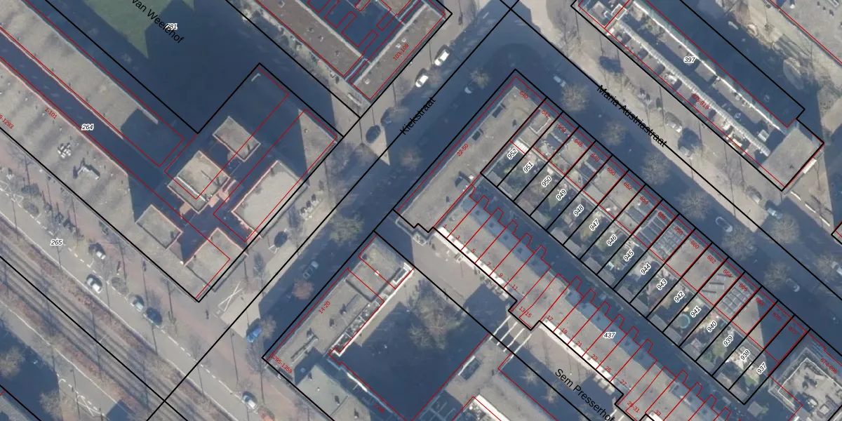 Het adres ligt op het perceel ASD41-AU-437, dat zich in de kadastrale gemeente Amsterdam bevindt. De gemiddelde perceelgrootte in Amsterdam is 7285,32 m². Dit perceel is kleiner: de perceeloppervlakte bedraagt 2653 m². De grootste perceeloppervlakte in de kadastrale gemeente is 2,75 km². De kleinste oppervlakte bedraagt 0 m². Er zijn 59 adressen aanwezig op het perceel. In de Basisregistratie Kadaster (BRK) werden de grenzen van het perceel geregistreerd op 31-03-2006.