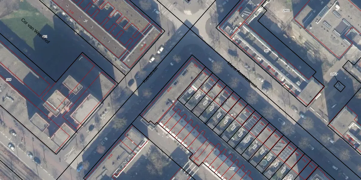 Het perceel waarop Kiekstraat 46 staat heeft een oppervlakte van 2653 m². Dit is een zeer groot perceel. De perceeloppervlakte wordt geregistreerd door het Kadaster. Gedetailleerde informatie over de maten van dit perceel kunt u vinden in het rapport Kadastrale kaart met maatvoering van Kiekstraat 46.