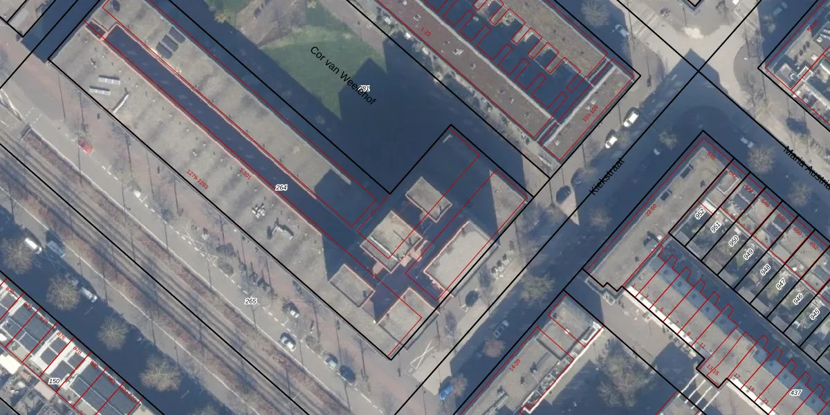 Kiekstraat 83 is gelegen op kadastraal perceel ASD41AU264. Deze kadastrale aanduiding is uniek en wordt gebruikt door het Kadaster om eigendomsrechten en andere zakelijke rechten vast te leggen. Het perceel maakt onderdeel uit van de kadastrale gemeente Amsterdam.