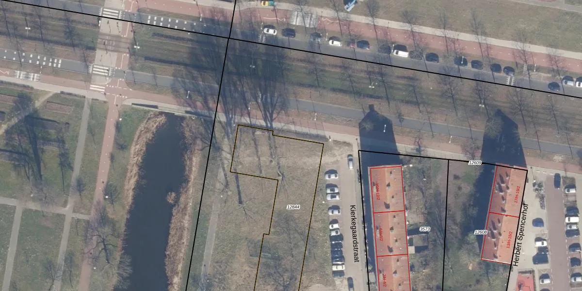 Kierkegaardstraat 157 is gelegen op kadastraal perceel STN02D12844. Deze kadastrale aanduiding is uniek en wordt gebruikt door het Kadaster om eigendomsrechten en andere zakelijke rechten vast te leggen. Het perceel maakt onderdeel uit van de kadastrale gemeente Sloten Noord-Holland.