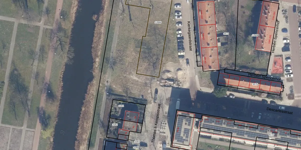 Kierkegaardstraat 95 is gelegen op kadastraal perceel STN02D12844. Deze kadastrale aanduiding is uniek en wordt gebruikt door het Kadaster om eigendomsrechten en andere zakelijke rechten vast te leggen. Het perceel maakt onderdeel uit van de kadastrale gemeente Sloten Noord-Holland.