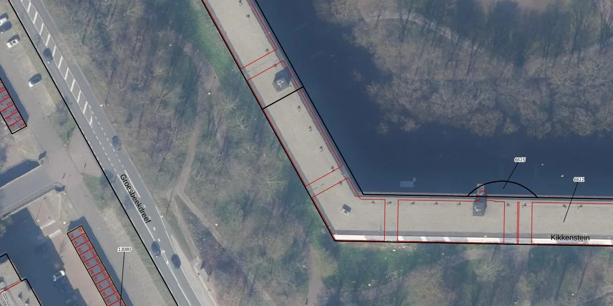 Het perceel waarop Kikkenstein 2430 staat heeft een oppervlakte van 2590 m². Dit is een zeer groot perceel. De perceeloppervlakte wordt geregistreerd door het Kadaster. Gedetailleerde informatie over de maten van dit perceel kunt u vinden in het rapport Kadastrale kaart met maatvoering van Kikkenstein 2430.