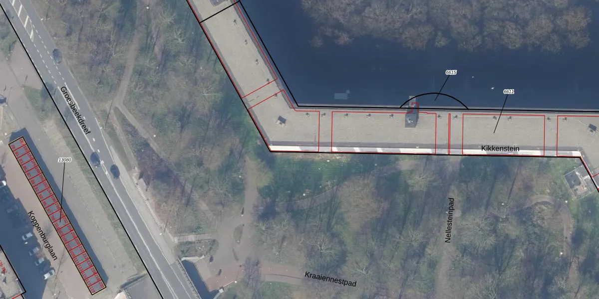 Het perceel waarop Kikkenstein 2927 staat heeft een oppervlakte van 2590 m². Dit is een zeer groot perceel. De perceeloppervlakte wordt geregistreerd door het Kadaster. Gedetailleerde informatie over de maten van dit perceel kunt u vinden in het rapport Kadastrale kaart met maatvoering van Kikkenstein 2927.