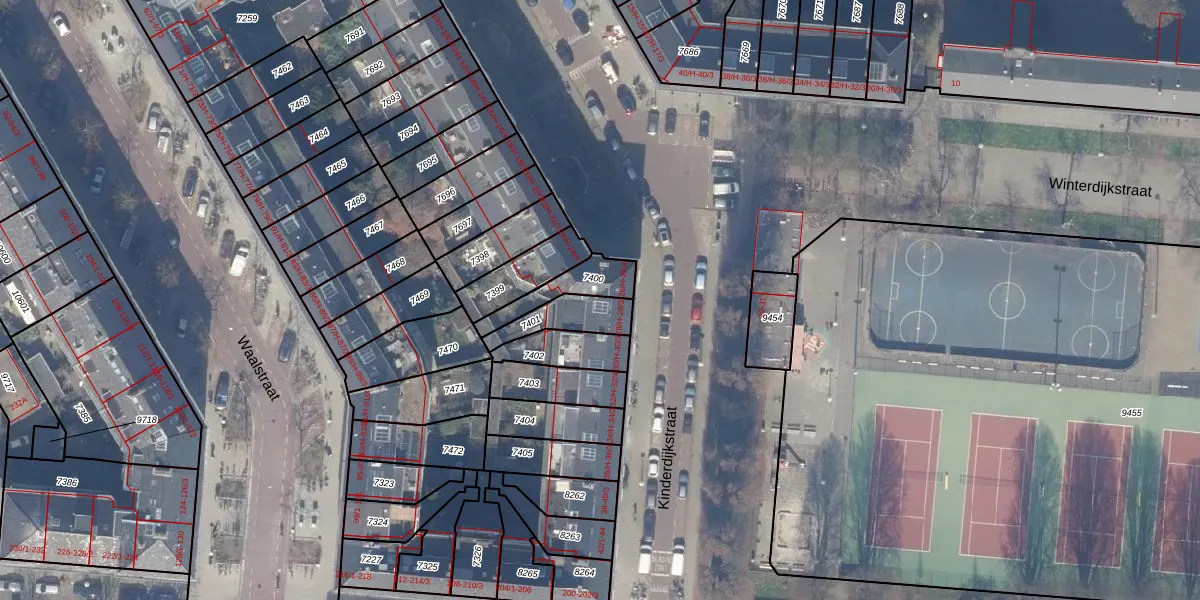 Het perceel waarop het adres ligt is ASD18-V-7401. De afkorting 'ASD18' staat voor kadastrale gemeente Amsterdam. De gemiddelde perceelgrootte in Amsterdam is 559,23 m². Dit perceel is kleiner: de perceeloppervlakte bedraagt 120 m². Het kleinste perceel in de kadastrale gemeente is 0 m² groot. De grootste perceeloppervlakte is 12,5 ha. Op het perceel liggen in totaal 4 adressen. In de Basisregistratie Kadaster (BRK) werden de grenzen van het perceel geregistreerd op 14-12-2006.