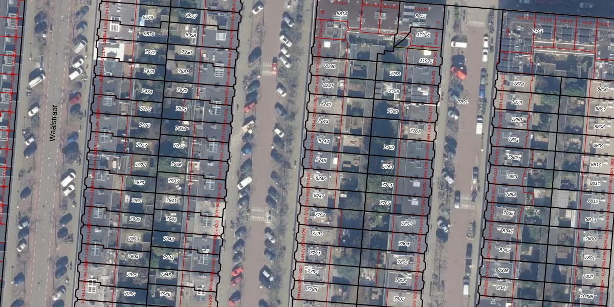 Het adres is gelegen op perceel 8245 in de sectie V en de kadastrale gemeente Amsterdam. De kadastrale aanduiding is aldus ASD18-V-8245. Het perceel is 128 m² groot. Dat is kleiner dan de gemiddelde perceeloppervlakte in Amsterdam, dat op 558,8 m² ligt. De grootste perceeloppervlakte in de kadastrale gemeente is 12,5 ha. De kleinste oppervlakte bedraagt 0 m². Op het perceel zijn 4 adressen aanwezig. De huidige grenzen van het perceel zijn digitaal in de Basisregistratie Kadaster (BRK) geregistreerd op 22-11-2006.