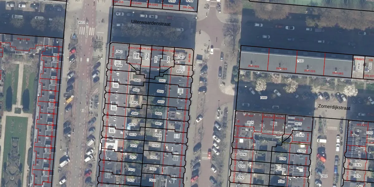Het perceel waarop het adres ligt is ASD18-V-8954. De afkorting 'ASD18' staat voor kadastrale gemeente Amsterdam. De gemiddelde perceelgrootte in Amsterdam is 558,8 m². Dit perceel is kleiner: de perceeloppervlakte bedraagt 154 m². Het kleinste perceel in de kadastrale gemeente is 0 m² groot. De grootste perceeloppervlakte is 12,5 ha. Op het perceel zijn 4 adressen aanwezig. De laatste wijziging in het de Basisregistratie Kadaster (BRK) was op 22-11-2006.