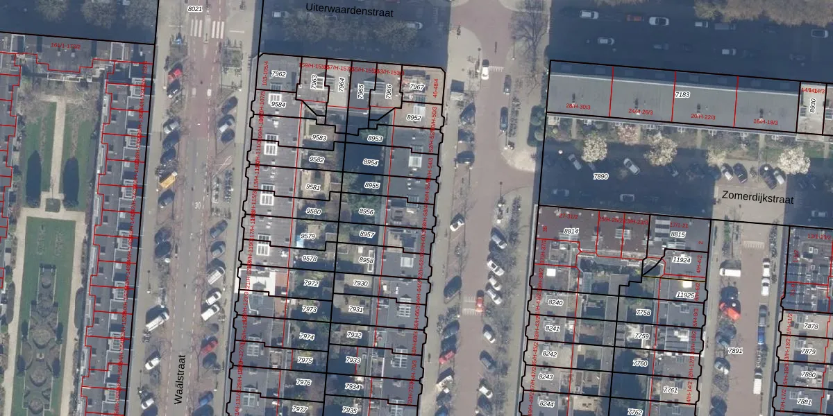 Het adres is gelegen op perceel 8956 in de sectie V en de kadastrale gemeente Amsterdam. De kadastrale aanduiding is aldus ASD18-V-8956. Het perceel is 153 m² groot. Dat is kleiner dan de gemiddelde perceeloppervlakte in Amsterdam, dat op 558,8 m² ligt. Het kleinste perceel in de kadastrale gemeente is 0 m² groot. De grootste perceeloppervlakte is 12,5 ha. Er zijn 5 adressen aanwezig op het perceel. De huidige grenzen van het perceel zijn digitaal in de Basisregistratie Kadaster (BRK) geregistreerd op 22-11-2006.
