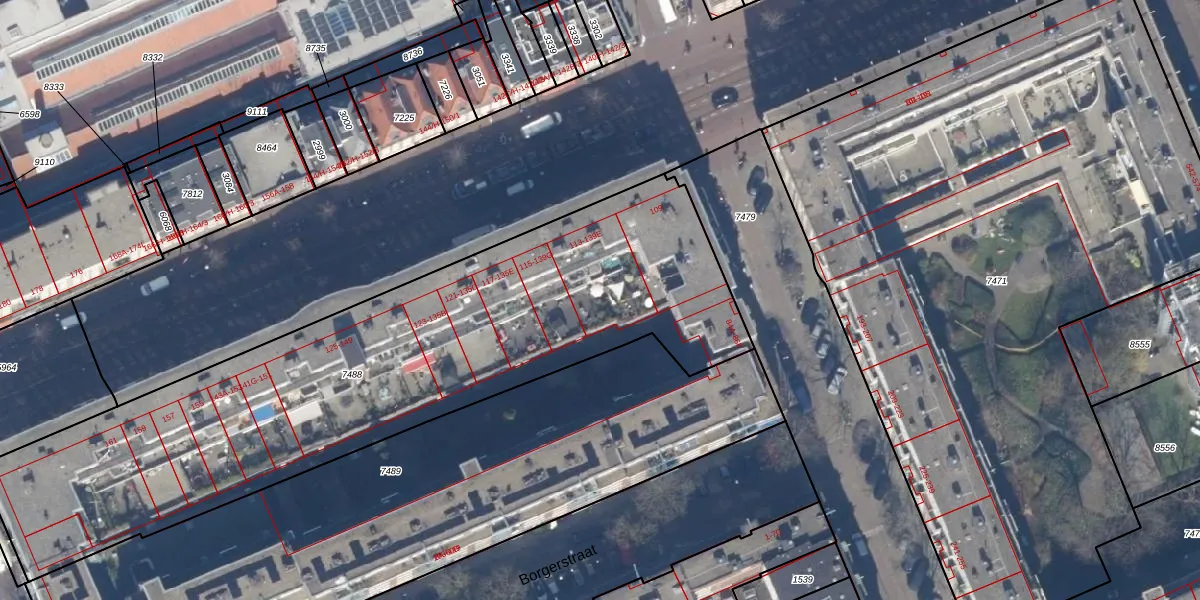 Het adres ligt op het perceel ASD13-Q-7488, dat zich in de kadastrale gemeente Amsterdam bevindt. De oppervlakte van het perceel is 2959 m². Dat is groter dan gemiddeld in Amsterdam, waar de gemiddelde perceeloppervlakte op 392,9 m² ligt. De grootste perceeloppervlakte in de kadastrale gemeente is 4,8 ha. De kleinste oppervlakte bedraagt 1 m². Op het perceel liggen in totaal 91 adressen. De laatste wijziging in het de Basisregistratie Kadaster (BRK) was op 23-11-2006.