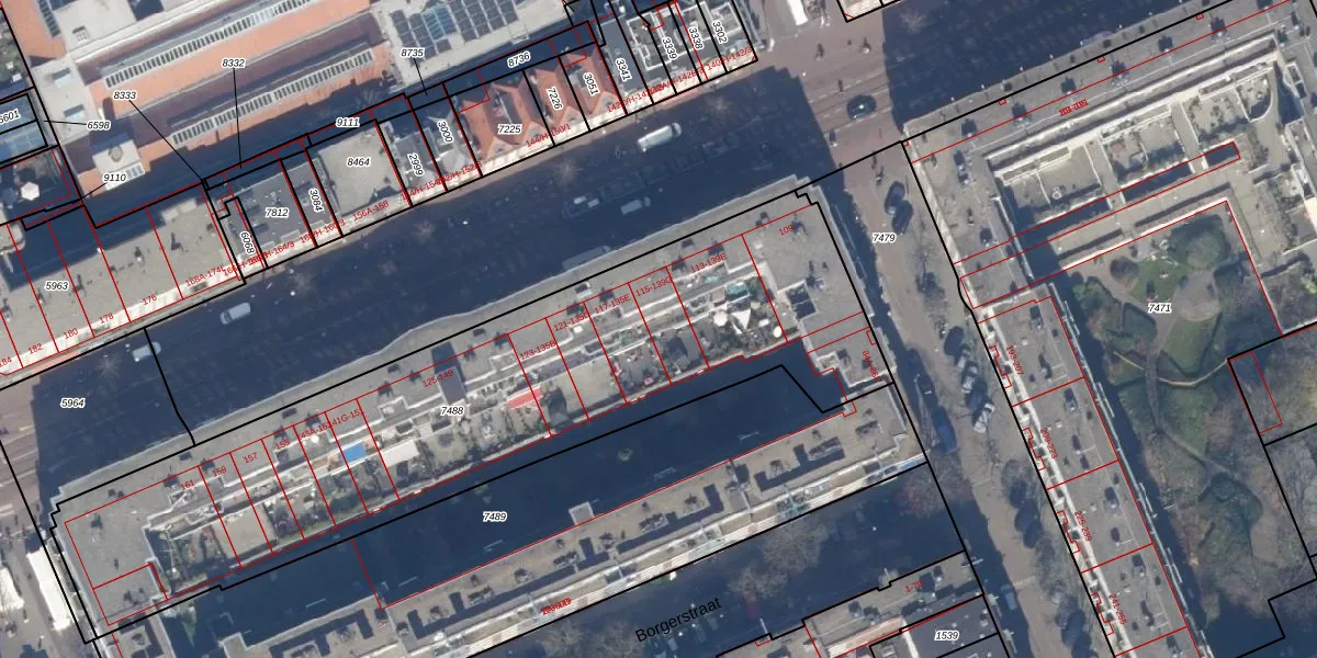 Het perceel waarop Kinkerstraat 139-G staat heeft een oppervlakte van 2959 m². Dit is een zeer groot perceel. De perceeloppervlakte wordt geregistreerd door het Kadaster. Gedetailleerde informatie over de maten van dit perceel kunt u vinden in het rapport Kadastrale kaart met maatvoering van Kinkerstraat 139-G.