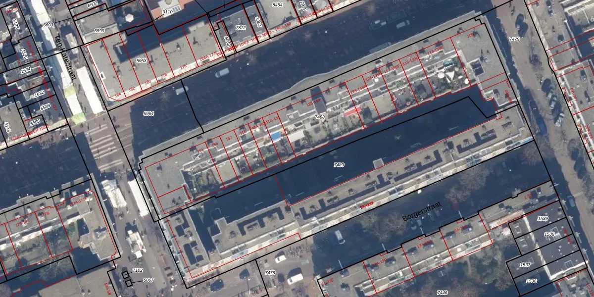 Het adres ligt op het perceel ASD13-Q-7488, dat zich in de kadastrale gemeente Amsterdam bevindt. De oppervlakte van het perceel is 2959 m². Dat is groter dan gemiddeld in Amsterdam, waar de gemiddelde perceeloppervlakte op 392,9 m² ligt. De grootste perceeloppervlakte in de kadastrale gemeente is 4,8 ha. De kleinste oppervlakte bedraagt 1 m². Op het perceel zijn 91 adressen aanwezig. In de Basisregistratie Kadaster (BRK) werden de grenzen van het perceel geregistreerd op 23-11-2006.