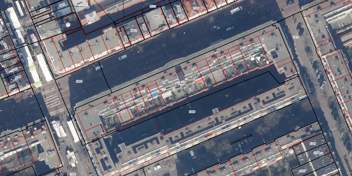 Het adres ligt op het perceel ASD13-Q-7488, dat zich in de kadastrale gemeente Amsterdam bevindt. De oppervlakte van het perceel is 2959 m². Dat is groter dan gemiddeld in Amsterdam, waar de gemiddelde perceeloppervlakte op 392,9 m² ligt. De grootste perceeloppervlakte in de kadastrale gemeente is 4,8 ha. De kleinste oppervlakte bedraagt 1 m². Op het perceel liggen in totaal 91 adressen. In de Basisregistratie Kadaster (BRK) werden de grenzen van het perceel geregistreerd op 23-11-2006.