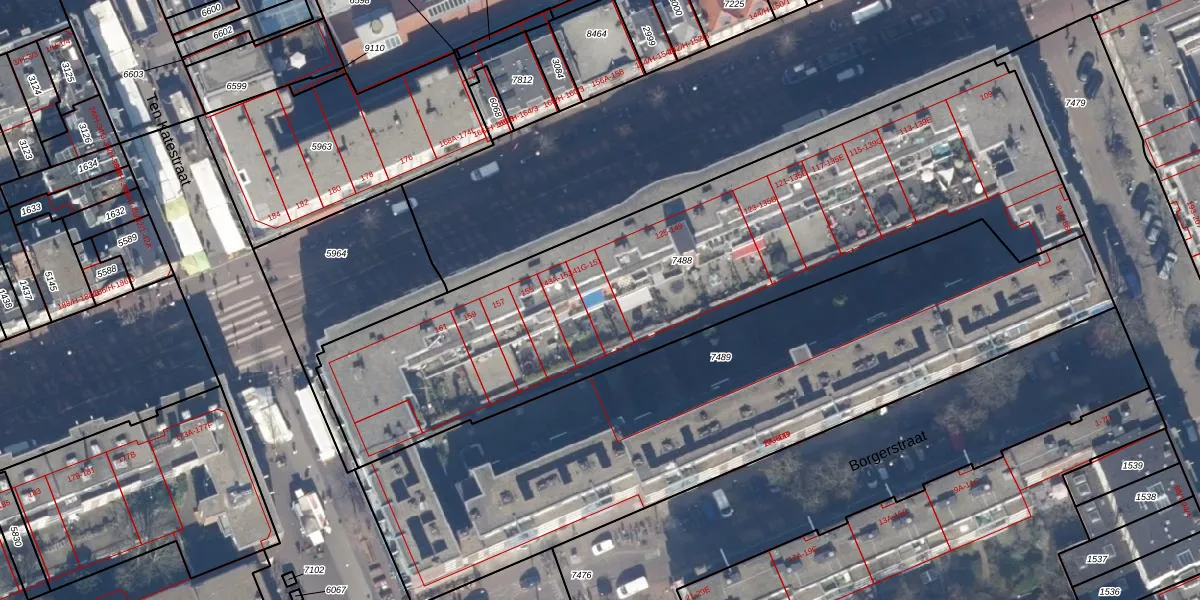 Het adres ligt op het perceel ASD13-Q-7488, dat zich in de kadastrale gemeente Amsterdam bevindt. De oppervlakte van het perceel is 2959 m². Dat is groter dan gemiddeld in Amsterdam, waar de gemiddelde perceeloppervlakte op 392,9 m² ligt. De grootste perceeloppervlakte in de kadastrale gemeente is 4,8 ha. De kleinste oppervlakte bedraagt 1 m². Op het perceel liggen in totaal 91 adressen. De laatste wijziging in het de Basisregistratie Kadaster (BRK) was op 23-11-2006.