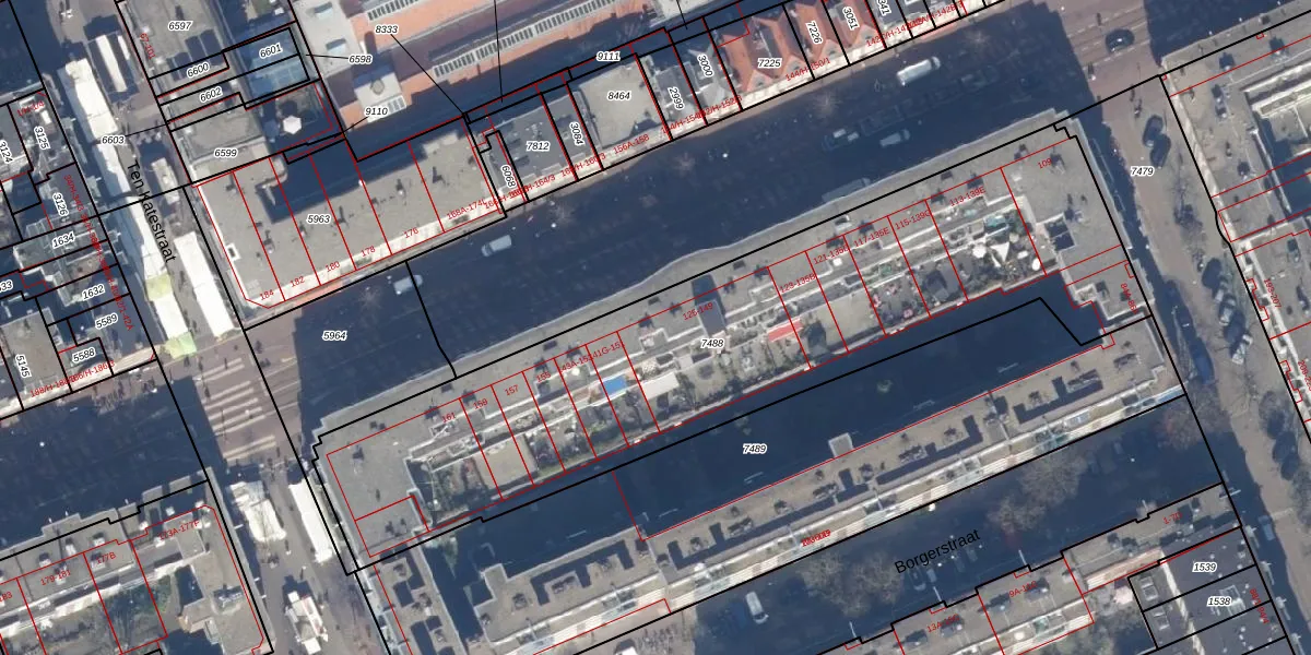 Het adres ligt op het perceel ASD13-Q-7488, dat zich in de kadastrale gemeente Amsterdam bevindt. De gemiddelde perceeloppervlakte in de kadastrale gemeente Amsterdam is 392,9 m². Dit perceel is met zijn 2959 m² dus groter dan gemiddeld. Het kleinste perceel in de kadastrale gemeente is 1 m² groot. De grootste perceeloppervlakte is 4,8 ha. Op het perceel zijn 91 adressen aanwezig. De huidige grenzen van het perceel zijn digitaal in de Basisregistratie Kadaster (BRK) geregistreerd op 23-11-2006.