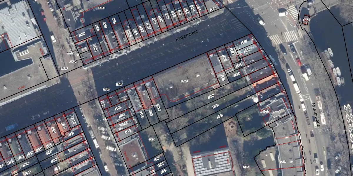 Het perceel waarop Kinkerstraat 15-F staat heeft een oppervlakte van 704 m². Dit is een groot perceel. De perceeloppervlakte wordt geregistreerd door het Kadaster. Gedetailleerde informatie over de maten van dit perceel kunt u vinden in het rapport Kadastrale kaart met maatvoering van Kinkerstraat 15-F.