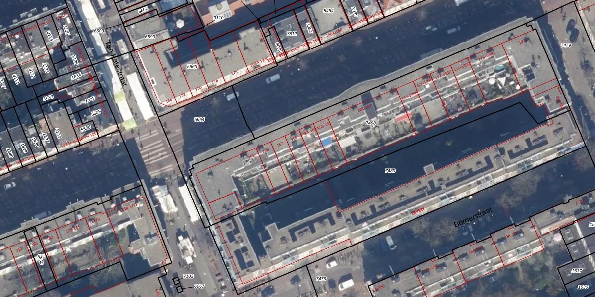 Het perceel waarop Kinkerstraat 155 staat heeft een oppervlakte van 2959 m². Dit is een zeer groot perceel. De perceeloppervlakte wordt geregistreerd door het Kadaster. Gedetailleerde informatie over de maten van dit perceel kunt u vinden in het rapport Kadastrale kaart met maatvoering van Kinkerstraat 155.