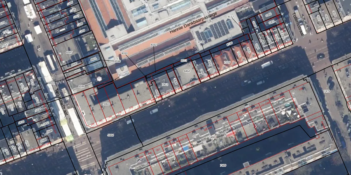 Het perceel waarop het adres ligt is ASD13-Q-3084. De afkorting 'ASD13' staat voor kadastrale gemeente Amsterdam. Het perceel is 60 m² groot. Dat is kleiner dan de gemiddelde perceeloppervlakte in Amsterdam, dat op 392,77 m² ligt. Het kleinste perceel in de kadastrale gemeente is 1 m² groot. De grootste perceeloppervlakte is 4,8 ha. Er zijn 4 adressen aanwezig op het perceel. De huidige grenzen van het perceel zijn digitaal in de Basisregistratie Kadaster (BRK) geregistreerd op 23-11-2006.