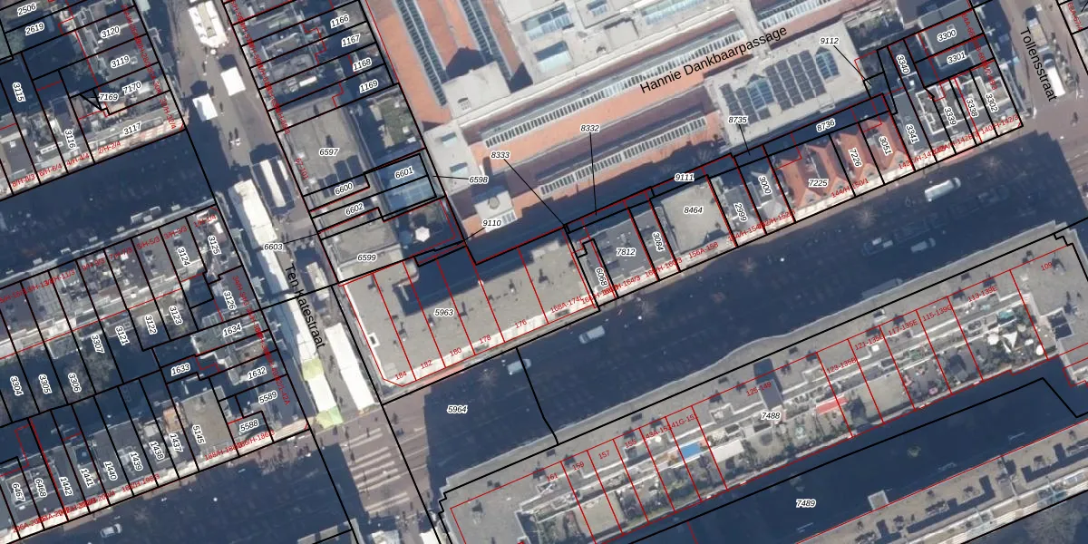 Het adres ligt op het perceel ASD16-T-5963, dat zich in de kadastrale gemeente Amsterdam bevindt. De oppervlakte van het perceel is 892 m². Dat is groter dan gemiddeld in Amsterdam, waar de gemiddelde perceeloppervlakte op 245,33 m² ligt. De grootste perceeloppervlakte in de kadastrale gemeente is 3,3 ha. De kleinste oppervlakte bedraagt 0 m². Er zijn 35 adressen aanwezig op het perceel. De laatste wijziging in het de Basisregistratie Kadaster (BRK) was op 08-09-2008.
