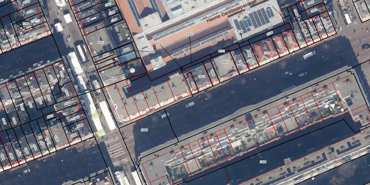 Het adres ligt op het perceel ASD16-T-5963, dat zich in de kadastrale gemeente Amsterdam bevindt. De oppervlakte van het perceel is 892 m². Dat is groter dan gemiddeld in Amsterdam, waar de gemiddelde perceeloppervlakte op 245,33 m² ligt. Het grootste perceel in de kadastrale gemeente is 3,3 ha. Het kleinste perceel heeft een oppervlakte van 0 m². Op het perceel liggen in totaal 35 adressen. In de Basisregistratie Kadaster (BRK) werden de grenzen van het perceel geregistreerd op 08-09-2008.