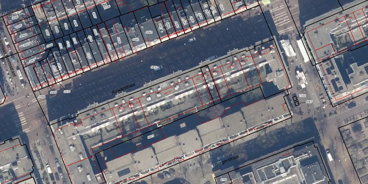 Kinkerstraat 195-B is gelegen op kadastraal perceel ASD16T5831. Deze kadastrale aanduiding is uniek en wordt gebruikt door het Kadaster om eigendomsrechten en andere zakelijke rechten vast te leggen. Het perceel maakt onderdeel uit van de kadastrale gemeente Amsterdam.
