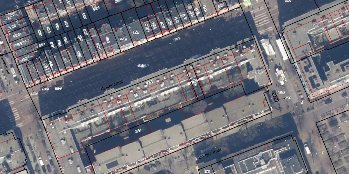 Het perceel waarop Kinkerstraat 195-F staat heeft een oppervlakte van 3225 m². Dit is een zeer groot perceel. De perceeloppervlakte wordt geregistreerd door het Kadaster. Gedetailleerde informatie over de maten van dit perceel kunt u vinden in het rapport Kadastrale kaart met maatvoering van Kinkerstraat 195-F.