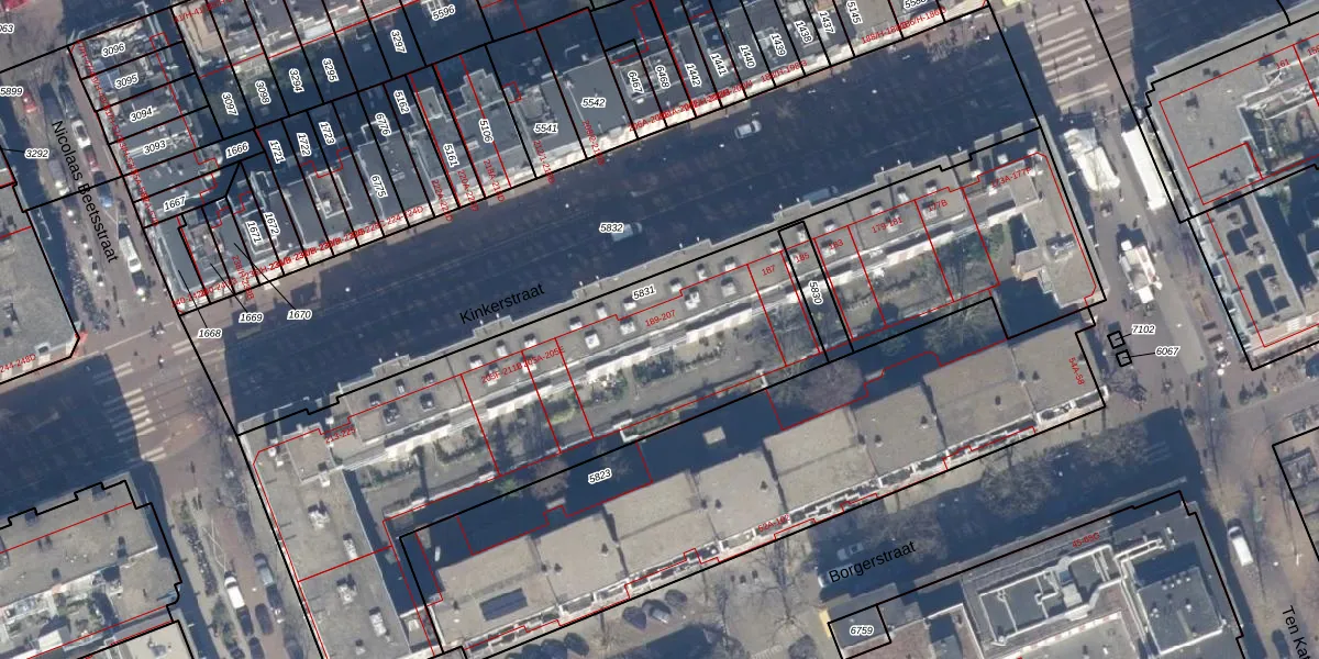 Het perceel waarop Kinkerstraat 199-C staat heeft een oppervlakte van 3225 m². Dit is een zeer groot perceel. De perceeloppervlakte wordt geregistreerd door het Kadaster. Gedetailleerde informatie over de maten van dit perceel kunt u vinden in het rapport Kadastrale kaart met maatvoering van Kinkerstraat 199-C.