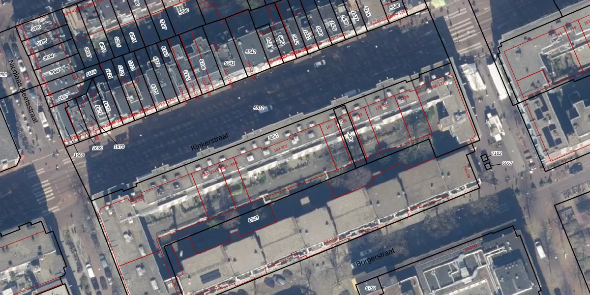 Het perceel waarop Kinkerstraat 199-F staat heeft een oppervlakte van 3225 m². Dit is een zeer groot perceel. De perceeloppervlakte wordt geregistreerd door het Kadaster. Gedetailleerde informatie over de maten van dit perceel kunt u vinden in het rapport Kadastrale kaart met maatvoering van Kinkerstraat 199-F.