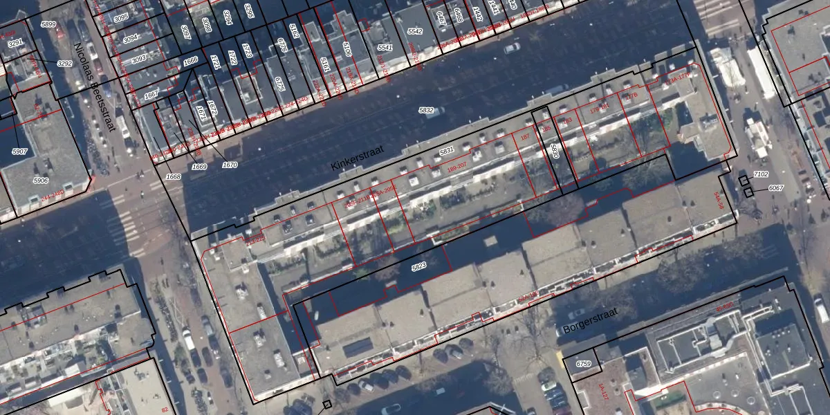 Het perceel waarop Kinkerstraat 203-A staat heeft een oppervlakte van 3225 m². Dit is een zeer groot perceel. De perceeloppervlakte wordt geregistreerd door het Kadaster. Gedetailleerde informatie over de maten van dit perceel kunt u vinden in het rapport Kadastrale kaart met maatvoering van Kinkerstraat 203-A.