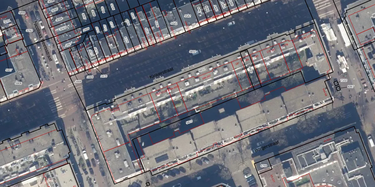 Kinkerstraat 203-B is gelegen op kadastraal perceel ASD16T5831. Deze kadastrale aanduiding is uniek en wordt gebruikt door het Kadaster om eigendomsrechten en andere zakelijke rechten vast te leggen. Het perceel maakt onderdeel uit van de kadastrale gemeente Amsterdam.