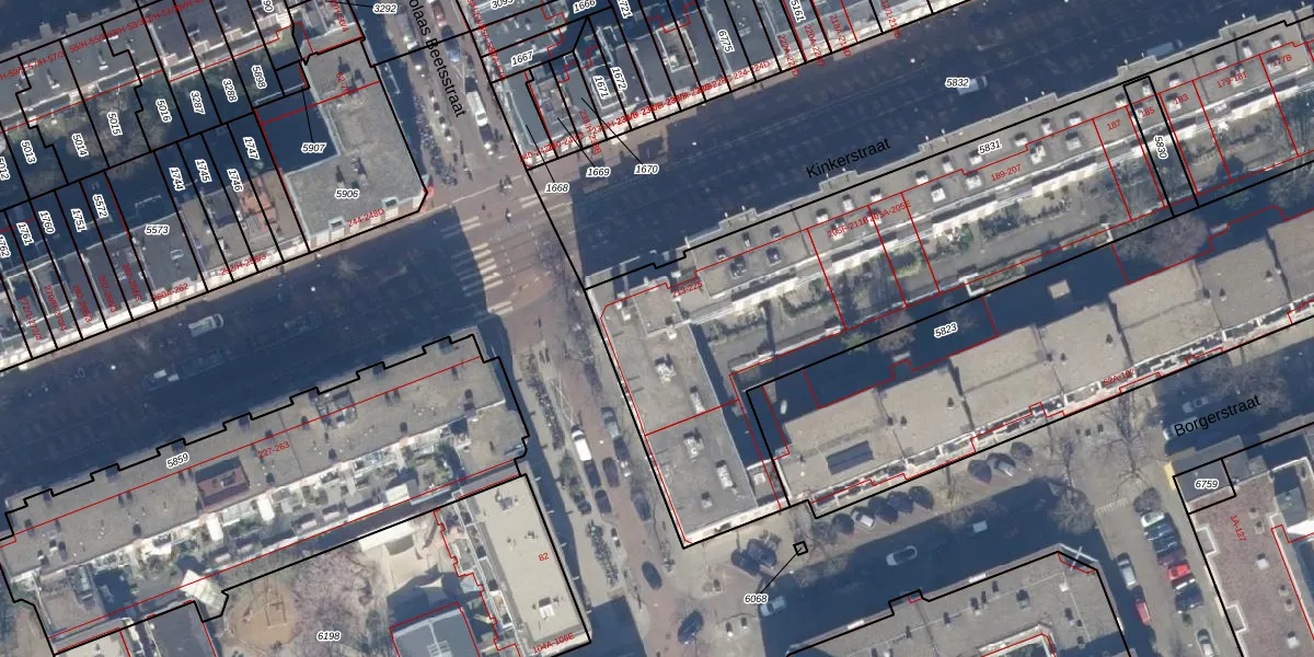 Kinkerstraat 215-F is gelegen op kadastraal perceel ASD16T5831. Deze kadastrale aanduiding is uniek en wordt gebruikt door het Kadaster om eigendomsrechten en andere zakelijke rechten vast te leggen. Het perceel maakt onderdeel uit van de kadastrale gemeente Amsterdam.
