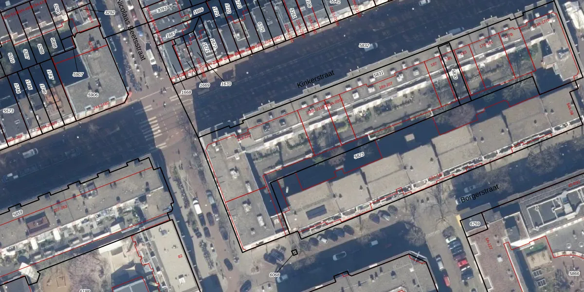 Het perceel waarop Kinkerstraat 223-L staat heeft een oppervlakte van 3225 m². Dit is een zeer groot perceel. De perceeloppervlakte wordt geregistreerd door het Kadaster. Gedetailleerde informatie over de maten van dit perceel kunt u vinden in het rapport Kadastrale kaart met maatvoering van Kinkerstraat 223-L.