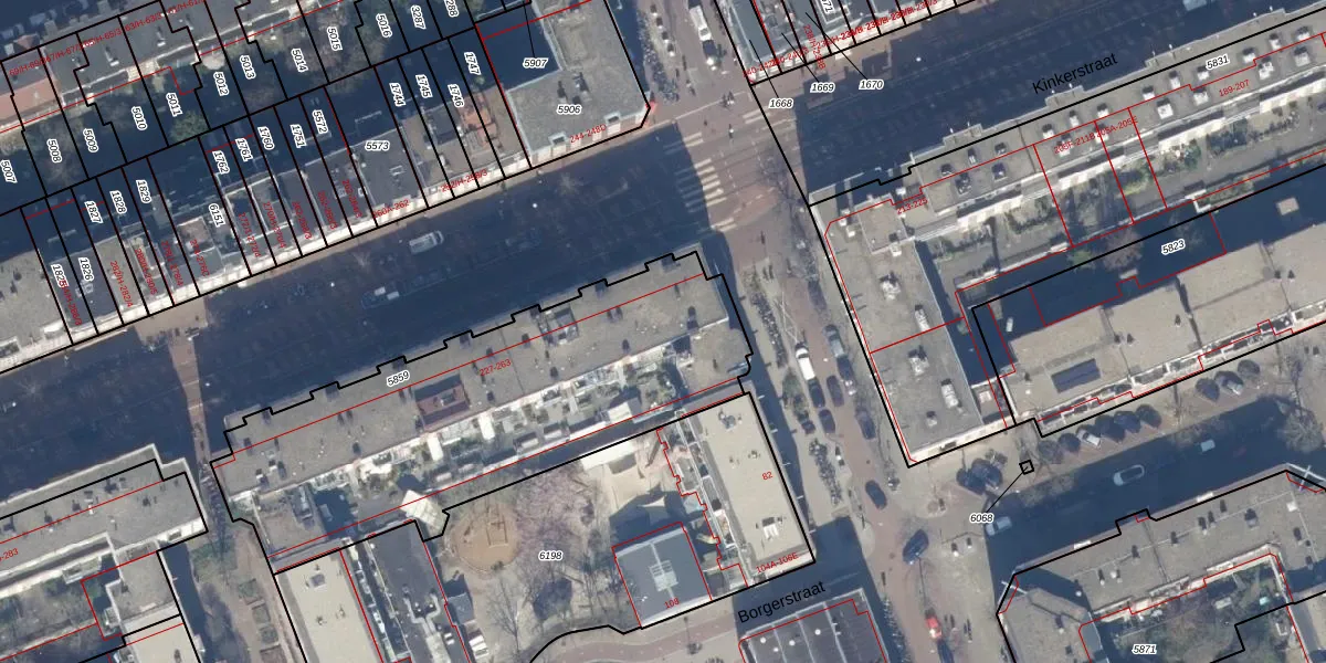 Het perceel waarop Kinkerstraat 229-L staat heeft een oppervlakte van 1852 m². Dit is een zeer groot perceel. De perceeloppervlakte wordt geregistreerd door het Kadaster. Gedetailleerde informatie over de maten van dit perceel kunt u vinden in het rapport Kadastrale kaart met maatvoering van Kinkerstraat 229-L.