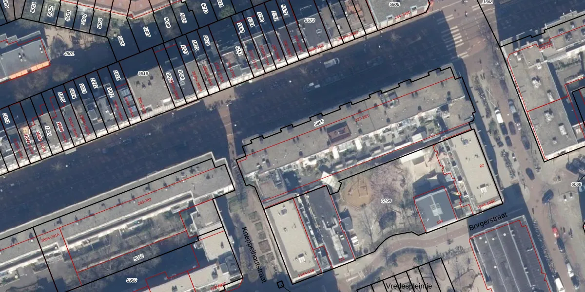Het perceel waarop het adres ligt is ASD16-T-5859. De afkorting 'ASD16' staat voor kadastrale gemeente Amsterdam. De gemiddelde perceeloppervlakte in de kadastrale gemeente Amsterdam is 245,33 m². Dit perceel is met zijn 1852 m² dus groter dan gemiddeld. Het kleinste perceel in de kadastrale gemeente is 0 m² groot. De grootste perceeloppervlakte is 3,3 ha. Op het perceel liggen in totaal 72 adressen. In de Basisregistratie Kadaster (BRK) werden de grenzen van het perceel geregistreerd op 15-08-2008.