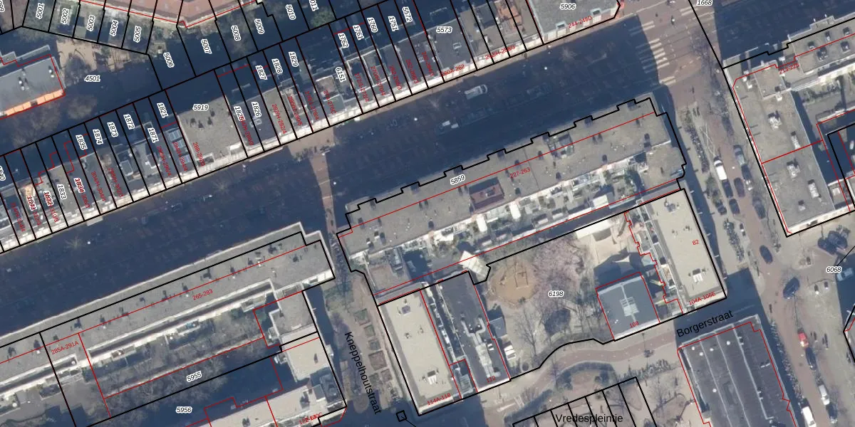 Het perceel waarop het adres ligt is ASD16-T-5859. De afkorting 'ASD16' staat voor kadastrale gemeente Amsterdam. De gemiddelde perceeloppervlakte in de kadastrale gemeente Amsterdam is 245,33 m². Dit perceel is met zijn 1852 m² dus groter dan gemiddeld. Het kleinste perceel in de kadastrale gemeente is 0 m² groot. De grootste perceeloppervlakte is 3,3 ha. Op het perceel liggen in totaal 72 adressen. De huidige grenzen van het perceel zijn digitaal in de Basisregistratie Kadaster (BRK) geregistreerd op 15-08-2008.