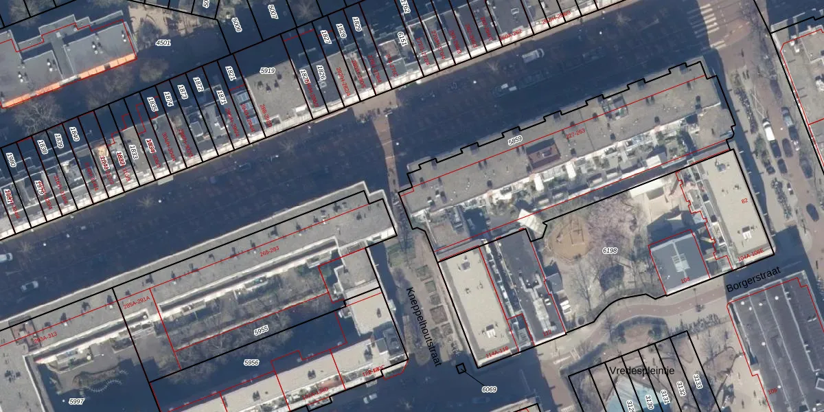 Het perceel waarop Kinkerstraat 257-A staat heeft een oppervlakte van 1852 m². Dit is een zeer groot perceel. De perceeloppervlakte wordt geregistreerd door het Kadaster. Gedetailleerde informatie over de maten van dit perceel kunt u vinden in het rapport Kadastrale kaart met maatvoering van Kinkerstraat 257-A.