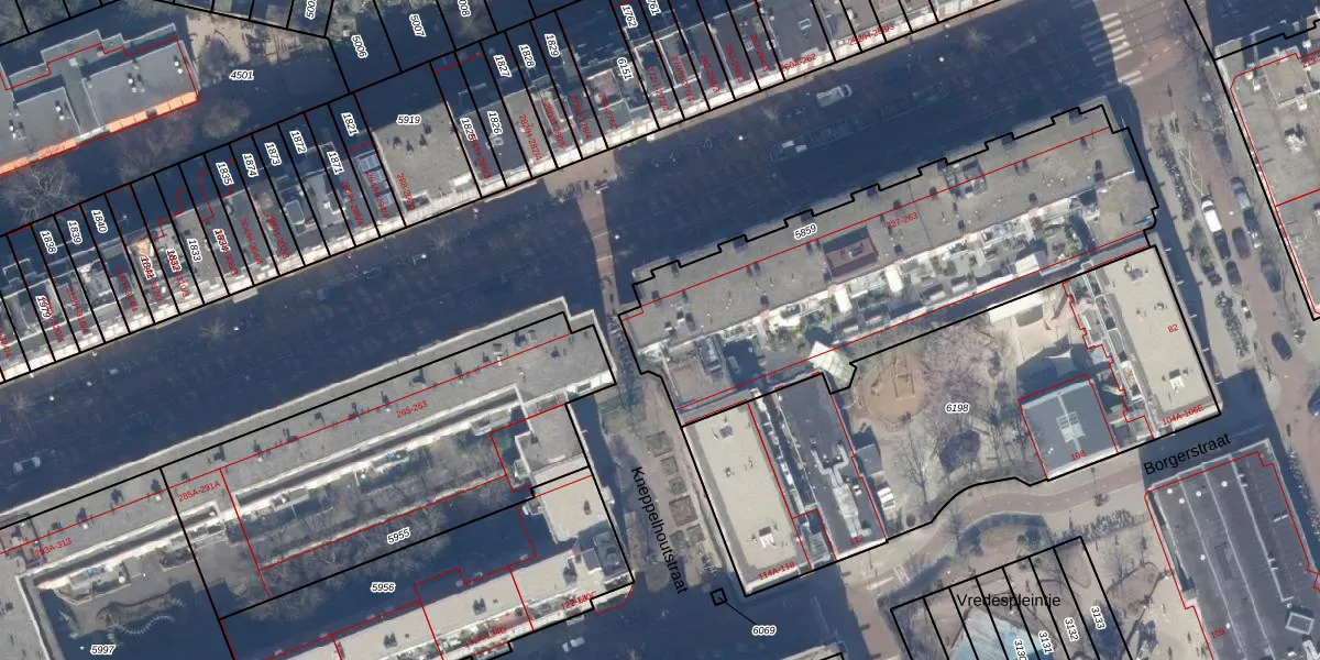 Het perceel waarop Kinkerstraat 257-D staat heeft een oppervlakte van 1852 m². Dit is een zeer groot perceel. De perceeloppervlakte wordt geregistreerd door het Kadaster. Gedetailleerde informatie over de maten van dit perceel kunt u vinden in het rapport Kadastrale kaart met maatvoering van Kinkerstraat 257-D.