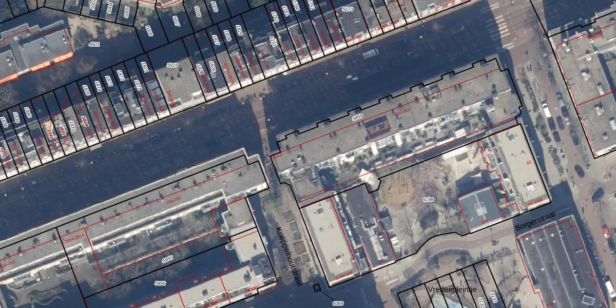 Het perceel waarop het adres ligt is ASD16-T-5859. De afkorting 'ASD16' staat voor kadastrale gemeente Amsterdam. De gemiddelde perceeloppervlakte in de kadastrale gemeente Amsterdam is 245,33 m². Dit perceel is met zijn 1852 m² dus groter dan gemiddeld. Het kleinste perceel in de kadastrale gemeente is 0 m² groot. De grootste perceeloppervlakte is 3,3 ha. Op het perceel liggen in totaal 72 adressen. De laatste wijziging in het de Basisregistratie Kadaster (BRK) was op 15-08-2008.