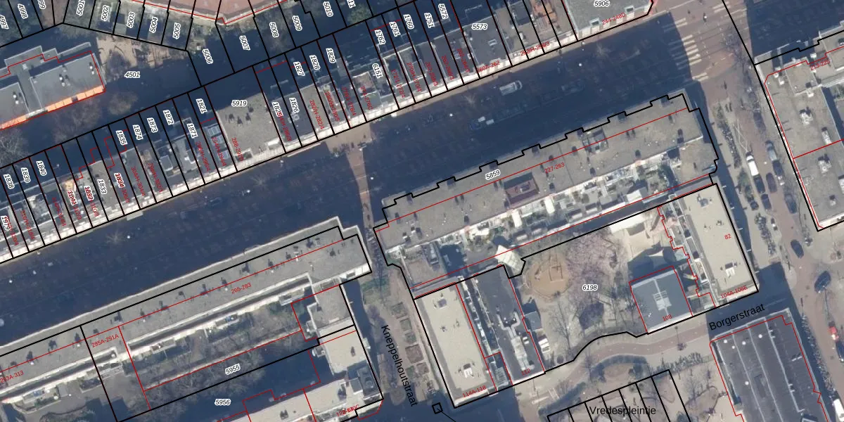 Het adres is gelegen op perceel 5859 in de sectie T en de kadastrale gemeente Amsterdam. De kadastrale aanduiding is aldus ASD16-T-5859. Het perceel is met 1852 m² relatief groot. Het gemiddelde ligt in de kadastrale gemeente Amsterdam op 245,33 m². Het kleinste perceel in de kadastrale gemeente is 0 m² groot. De grootste perceeloppervlakte is 3,3 ha. Er zijn 72 adressen aanwezig op het perceel. De huidige grenzen van het perceel zijn digitaal in de Basisregistratie Kadaster (BRK) geregistreerd op 15-08-2008.