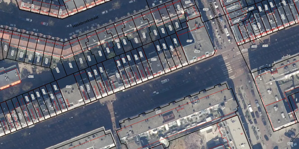 Het perceel waarop het adres ligt is ASD16-T-5572. De afkorting 'ASD16' staat voor kadastrale gemeente Amsterdam. Het perceel is kleiner dan gemiddeld in Amsterdam. Het perceel is 96 m² groot, terwijl het gemiddelde ligt op 245,33 m². Het kleinste perceel in de kadastrale gemeente is 0 m² groot. De grootste perceeloppervlakte is 3,3 ha. Er zijn 3 adressen aanwezig op het perceel. In de Basisregistratie Kadaster (BRK) werden de grenzen van het perceel geregistreerd op 15-08-2008.