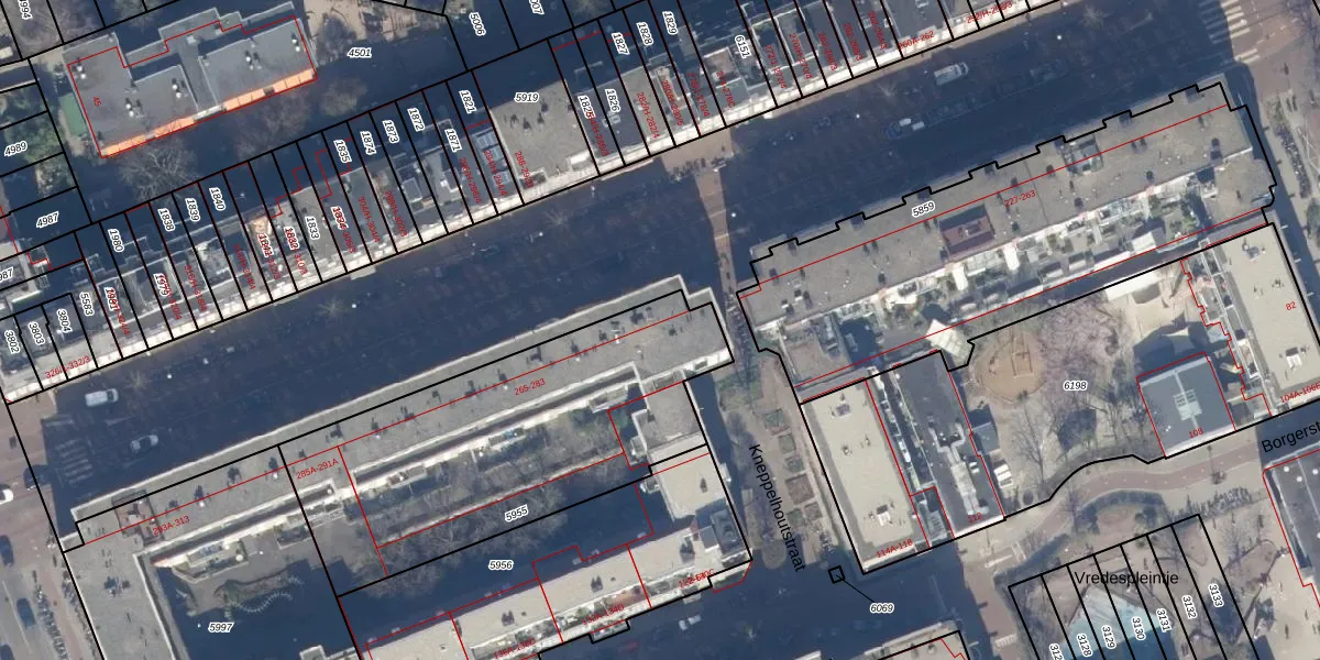 Kinkerstraat 267 is gelegen op kadastraal perceel ASD16T5955. Deze kadastrale aanduiding is uniek en wordt gebruikt door het Kadaster om eigendomsrechten en andere zakelijke rechten vast te leggen. Het perceel maakt onderdeel uit van de kadastrale gemeente Amsterdam.