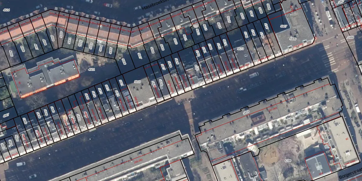 Het perceel waarop het adres ligt is ASD16-T-1828. De afkorting 'ASD16' staat voor kadastrale gemeente Amsterdam. Het perceel is kleiner dan gemiddeld in Amsterdam. Het perceel is 93 m² groot, terwijl het gemiddelde ligt op 245,33 m². De grootste perceeloppervlakte in de kadastrale gemeente is 3,3 ha. De kleinste oppervlakte bedraagt 0 m². Er zijn 6 adressen aanwezig op het perceel. In de Basisregistratie Kadaster (BRK) werden de grenzen van het perceel geregistreerd op 15-08-2008.