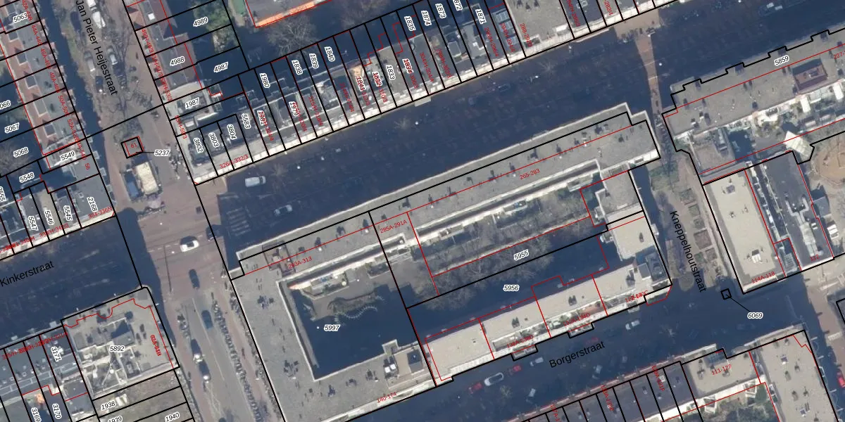 Het perceel waarop Kinkerstraat 283 staat heeft een oppervlakte van 1589 m². Dit is een zeer groot perceel. De perceeloppervlakte wordt geregistreerd door het Kadaster. Gedetailleerde informatie over de maten van dit perceel kunt u vinden in het rapport Kadastrale kaart met maatvoering van Kinkerstraat 283.