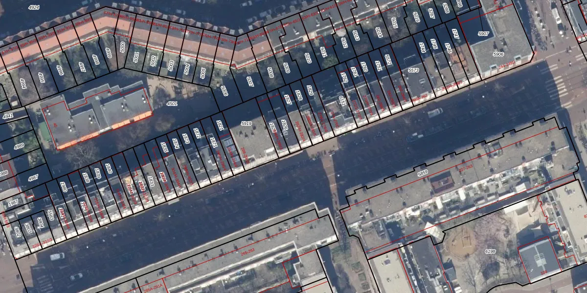 Het perceel waarop het adres ligt is ASD16-T-1826. De afkorting 'ASD16' staat voor kadastrale gemeente Amsterdam. Het perceel is kleiner dan gemiddeld in Amsterdam. Het perceel is 92 m² groot, terwijl het gemiddelde ligt op 245,33 m². De grootste perceeloppervlakte in de kadastrale gemeente is 3,3 ha. De kleinste oppervlakte bedraagt 0 m². Op het perceel liggen in totaal 9 adressen. De huidige grenzen van het perceel zijn digitaal in de Basisregistratie Kadaster (BRK) geregistreerd op 15-08-2008.